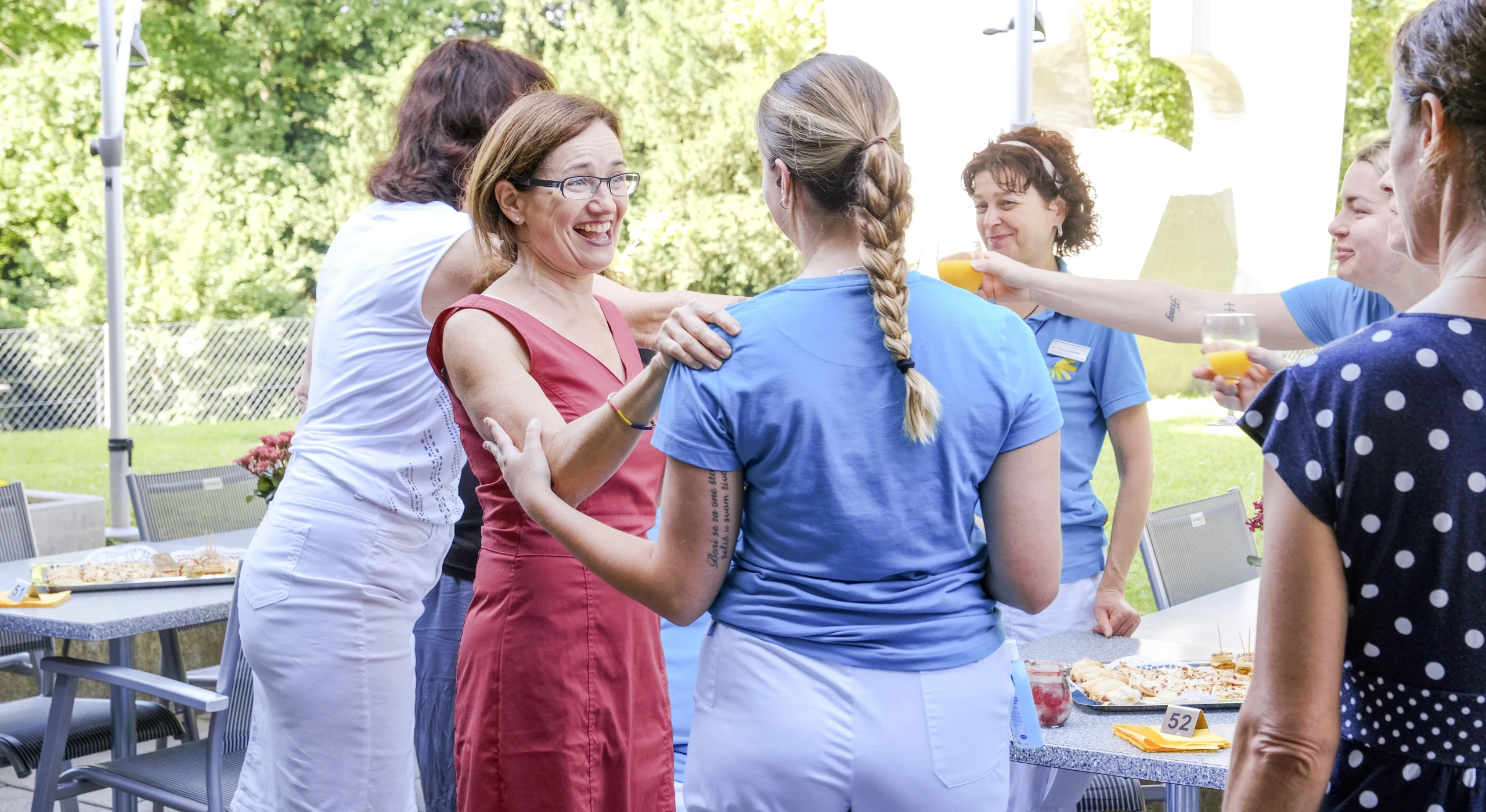 Laura Gansner«Das hier ist erst der Anfang», richtet Stephan Berger seine Worte an die versammelten Mitarbeitenden des Pflegeheims Sonnhalden, die sich vergangene Woche auf der Gartenterrasse zum Anstossen versammelt haben. Grund für ihr Zusammenkommen ist die Verleihung der Prädikatsreife der Fachstelle UND, für welche deren Geschäftsführerin Birgit Lauber und Stephan Berger an diesem Tag vor Ort sind. Berger begleitete als Projektleiter der Fachstelle Mitarbeitende aus allen Bereichen des Pflegeheims während mehr als einem Jahr, um gemeinsam konkrete Ziele zu erarbeiten, wie Beruf und Privatleben besser zu vereinbaren. Basierend auf den Ergebnissen verschiedener Befragungen und Workshops wurden neue Lösungen für Stellvertretungen erarbeitet und eine externe Anlaufstelle für belastende Situationen oder allfällige Diskriminierungsfälle geschaffen. Auch der Dienstplanung hat man sich angenommen; kein einfaches Unterfangen, wie «Sonnhalden»-Geschäftsleiterin Marlene Schadegg beschreibt.