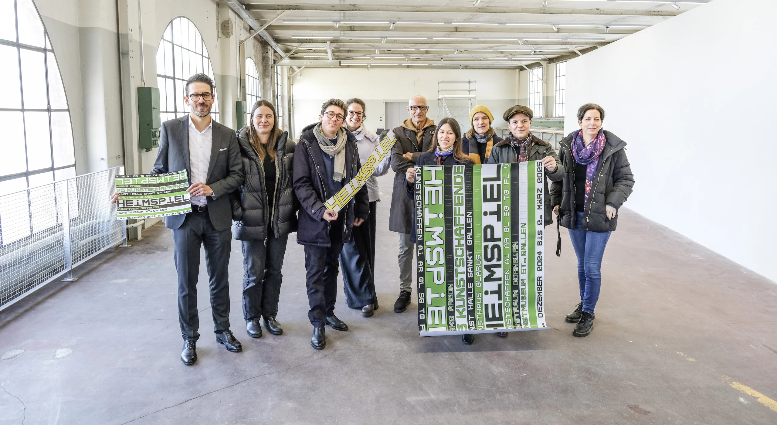 Stefanie Hoch ist eine der fünf Kuratorinnen und Kuratoren, die im Rahmen des «Heimspiels» aus den knapp 480 eingereichten Dossiers von Kunstschaffenden aus der definierten Region (siehe Kasten) jeweils eine Ausstellung konzipiert hat. «Mir war es wichtig, die Geschichte der Webmaschinenhalle aufzugreifen», so Hoch. Dies materiell – an einer Wand hängen bestickte Tischdecken, vor einem Fenster vom Regen gezeichnete Stofftücher – aber auch symbolisch. «Es geht ganz grundsätzlich um Netzwerke, sozial und global; um Verknüpfungen, die sich nicht mehr so leicht trennen lassen.» Ausserdem müssen die Kunstobjekte die Kälte in der ehemaligen Webmaschinenhalle aushalten können. Der Ausstellungsraum ist weder isoliert noch geheizt. «Das gehört halt zur Halle dazu, die ansonsten mit ihrem industriellen Charakter eine einzigartige Ausstellungsmöglichkeit bietet.»