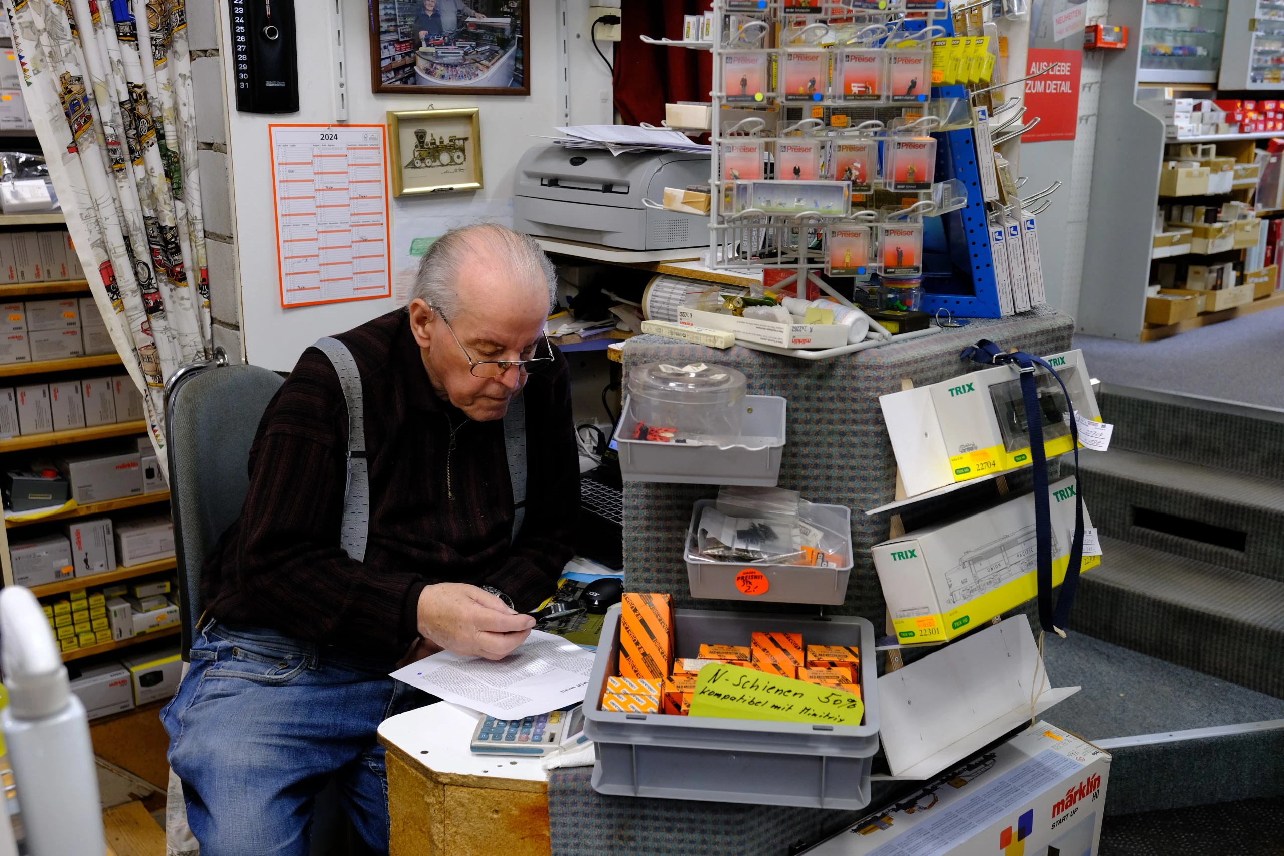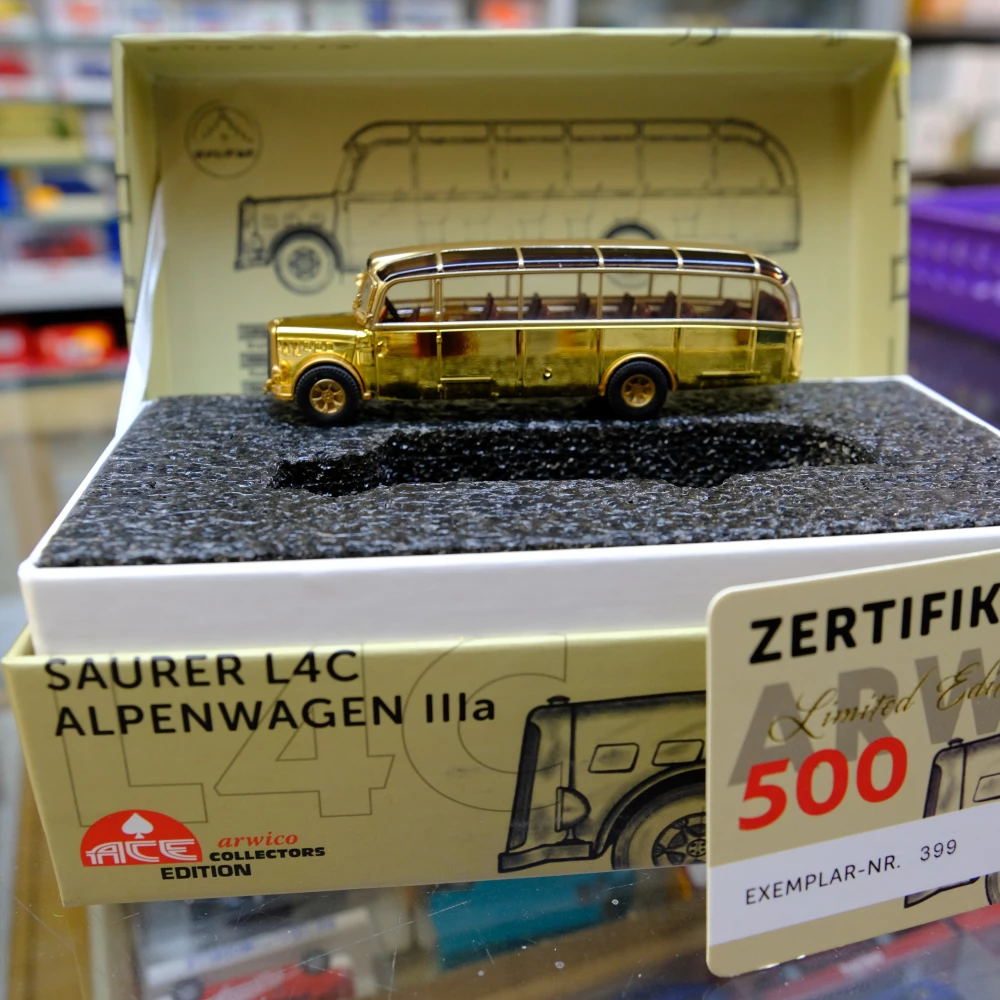 Und heute, wie steht es um die Kundschaft und wer ist diese? «Sie besteht nach wie vor aus alten Fans, auch Familien mit Kindern, mehrheitlich aus den Regionen Winterthur, Rheintal, aus dem Bündnerland, dem Thurgau, Deutschland, den USA.» Von dort kam neulich ein Kunde, beeindruckt vor allem durch den roten «Churchill-Pfeil» von 1946. «Er will seine Bestellung im März abholen», sagt Brunner. Und was kosten diese Trouvaillen eigentlich? «Eine Lok bis zu 4000 Franken, das ist aber selten», erklärt Brunner, «früher galt das übrigens als Kapitalanlage, was man sich inzwischen als Irrtum eingestehen muss.» Trotzdem seien es Sammler- und Liebhaberobjekte geblieben. Dabei nimmt er behutsam den funkelnden «Saurer L4C Alpenwagen Limited Edition Gold» aus dem Karton und lässt ihn im Neonlicht erstrahlen. Den heutigen Stellenwert dieser Branche zu beziffern, sei müssig, angesichts des veränderten Spielverhaltens der Jungen. Die Kinder würden heutzutage kaum mehr auf diesen Zug aufspringen. Und was wünschen sich die Brunners für den Fortbestand ihres Geschäfts? «Solange die Nachfrage besteht, bleiben wir dran, mit Herzblut und Leidenschaft», sind sich die beiden einig. Ab Januar werde man aber vermutlich die Öffnungszeiten etwas reduzieren.