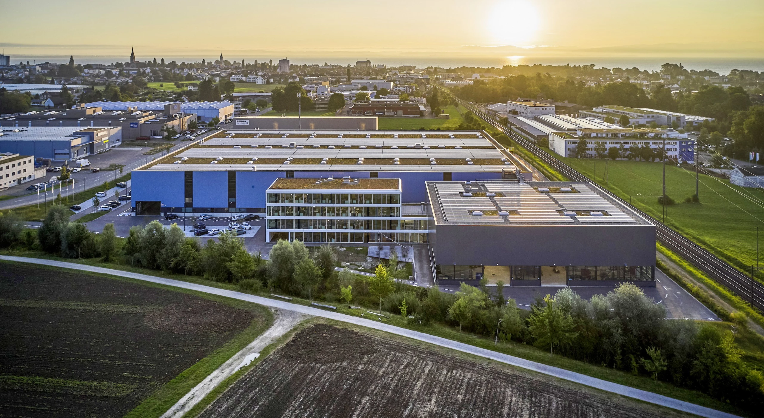 Fristgerecht zur grossen Jubiläumsfeier dieses Wochenende sind nun alle Abteilungen in Romanshorn angekommen. Mit dem 30 000 Quadratmetern grossen und 52 Millionen Franken schweren Forster Campus unterstreiche man «das Bekenntnis zu den Arbeitsplätzen im Kanton Thurgau», wie das der Hersteller von Stahlprofilsystemen diese Woche anlässlich der Eröffnung mitteilt. Und nicht nur das. Der Gebäudekomplex sei auch als Vorbild für nachhaltiges Bauen konzipiert. Der Entwurf für die drei Baukörper stammt vom ortsansässigen Architekturbüro Gisel + Partner und die Liste der Nachhaltigkeits-Massnahmen ist umfangreich: So wurden beispielsweise rund 1900 Tonnen CO2-armer Stahl verbaut; die für die Produktion benötigte Energie wird von einer Photovoltaikanlage erzeugt und bei den Produktionsanlagen werden ausschliesslich geschlossene Kühlkreisläufe verwendet, was den Wasserverbrauch erheblich reduziert.