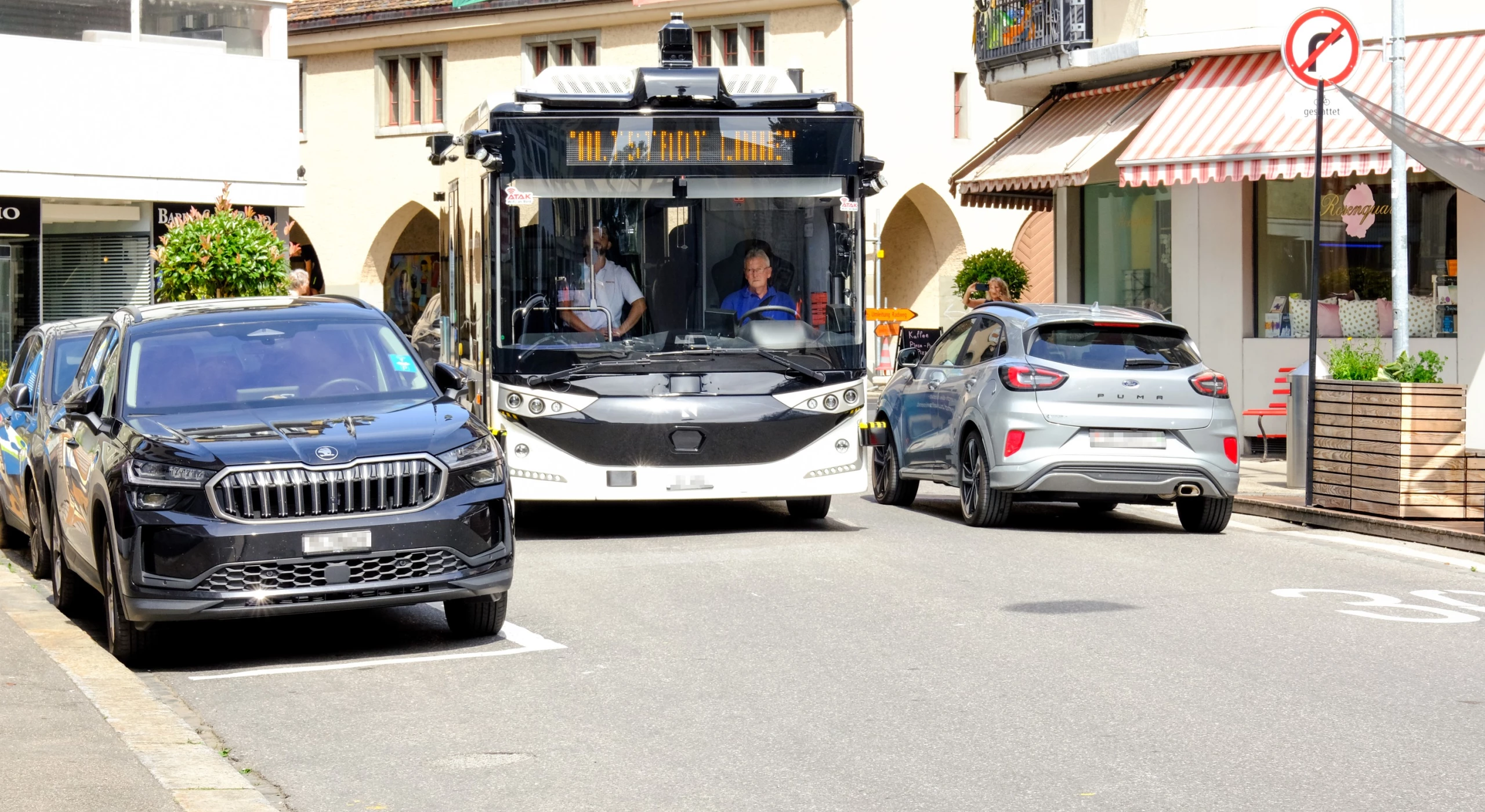 Sabine MoosmannAb kommendem Montag, 30. März, startet der selbstfahrende Bus Artour jeweils erst um 8.06 Uhr mit seiner ersten Fahrt in den Tag. Dafür ist er neu im Halbstundentakt unterwegs und fährt abends eine Stunde länger bis 17.52 Uhr. Die bisherigen Erfahrungen des Projektteams zeigen, dass die zeitliche Verschiebung des Fahrbetriebs nach hinten im Sommer und vor allem im Hinblick auf die Touristen sinnvoll ist. Damit zusätzlich die Anzahl an Fahrten auf 18 erhöht werden kann, wird auch die Mittagspause eine halbe Stunde später durchgeführt. Die erste Fahrt am Nachmittag startet somit um 13.36 Uhr. Aufgrund von Rückmeldungen der Fahrgäste und des Projektfortschrittes wird zudem die Fahrtgeschwindigkeit schrittweise von 22 auf 30 km/h erhöht. Während des Wochenmarkts, der ab Ende April wieder jeden Samstag stattfindet, wird die Route angepasst. Der Bus fährt dann jeweils direkt zum Römerhof und von dort zur Haltestelle Saurer Museum/Schwimmbad. Die Haltestelle ZIK/Medizinisches Zentrum wird nicht bedient.