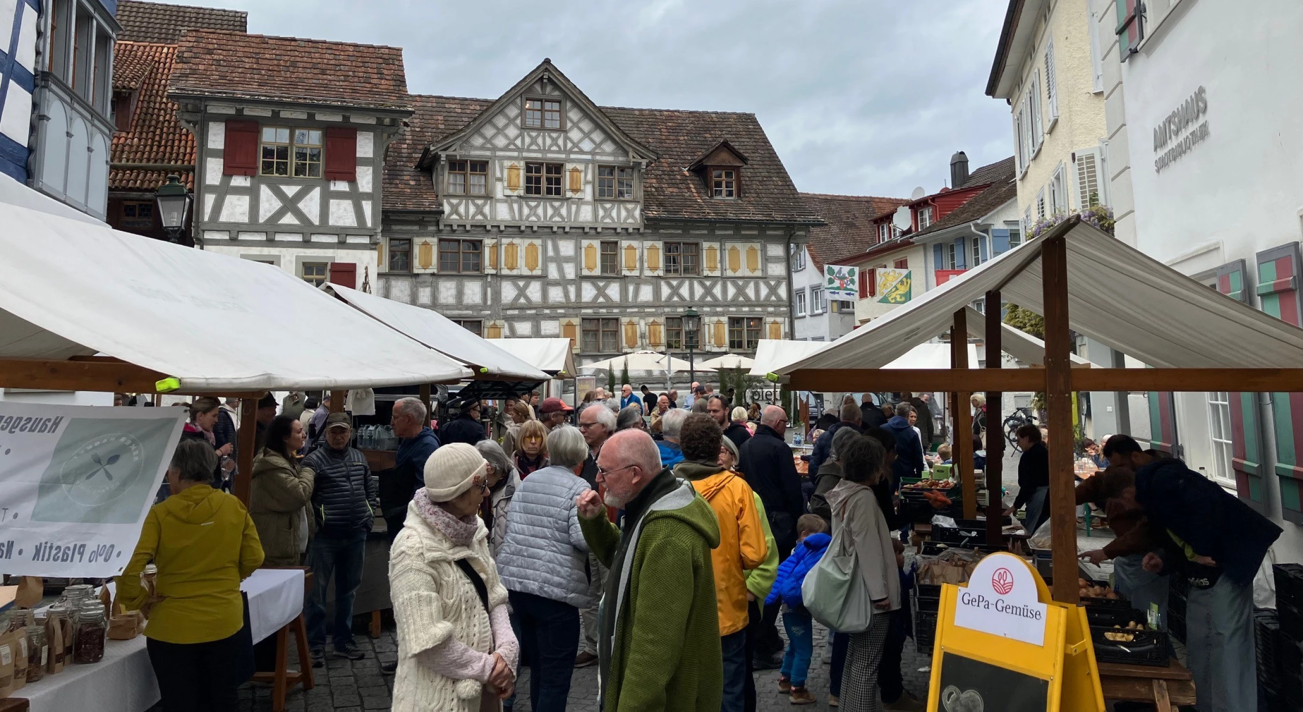 Kim Berenice GeserDie Vorbereitungen für die Marktsaison 2025 waren alles andere als einfach. Weil sich während der Winterpause kein Betreiber für den Gemüsestand fand, wurde kurzzeitig sogar das Ende des Wochenmarkts in Betracht gezogen. Allerdings auch bald wieder verworfen. Stattdessen entschloss sich das OK den Stand selbst zu betreiben. Als die Weichen hierfür schon gestellt waren, meldete sich der Berger Gemüsebauer Patrik Germann und das OK konnte aufatmen. Von da an ging es für den Markt Woche für Woche aufwärts, wie Präsident Simon Hollenstein verrät. «Von Markttag zu Markttag hatten wir mehr Besuchende. Wir ziehen eine durchwegs positive Bilanz von dieser Saison.» Besonders erfreulich: Im Schnitt sei das Besucheraufkommen vor allem auch im Vergleich zu den Vorjahren gestiegen. Hollenstein führt dies unter anderem auf das verstärkte Marketing zurück – in der Zeitung, den sozialen Medien und über persönliche Kontakte. Aber auch vermehrte musikalische Darbietungen und Co-Produktionen wie die Lancierung der Städtli Marke oder der Einweihung des öffentlichen Bücherschranks, die am Wochenmarkt stattfanden, lockten an den Samstagen mehr Volk auf den Storchenplatz. Auch das Sommerloch, so Hollenstein, sei dieses Jahr weniger spürbar gewesen. «Wir hatten zwar wie immer in dieser Zeit weniger Stände, aber nicht weniger Besuchende.» Er ist sich sicher, dass dazu vor allem auch die Umleitung des Velowegs beigetragen hat. «Diese Massnahme zur Belebung der Altstadt hat sich aus unserer Sicht definitiv gelohnt, denn touristisch war mehr los», hält er fest. Die Durchführung im kommenden Jahr ist deshalb bereits gesetzt. An der Abschlusssitzung mit allen Standbetreibenden haben bereits alle Verantwortlichen der Ankerstände wieder zugesagt, inklusive dem «Gmüesler». Und wie dieses Jahr soll es auch 2026 wieder ein Rahmenprogramm geben. «Wir haben noch einige Musikerinnen und Musiker im Köcher, die in dieser Saison noch nicht spielen konnten», verrät Hollenstein. Ausserdem suche man wie immer nach helfenden Händen. «Vor allem Fahrer und Fahrerinnen brauchen wir nächstes Jahr», appelliert der Präsident abschliessend
